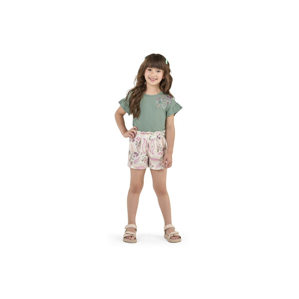 Shorts em tecido texturizado sublimado . Com elástico na cintura.