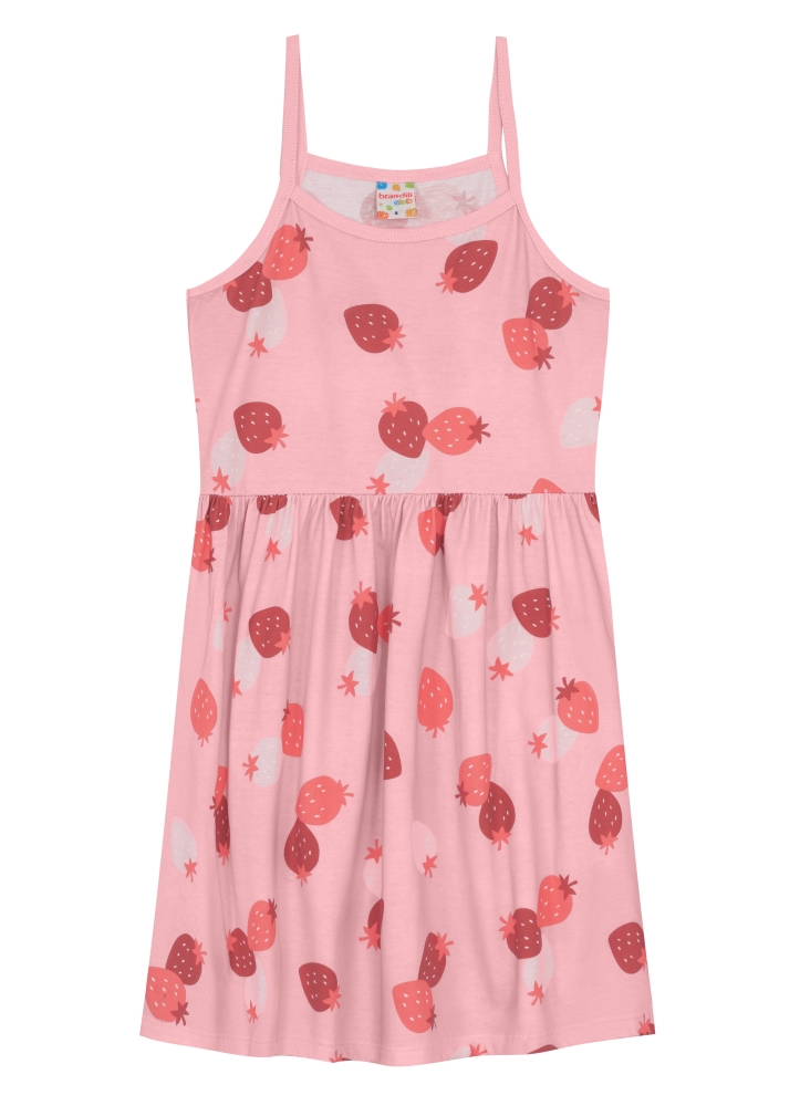 Em meia malha. Algodão. Alça fina. Acinturado na costura.